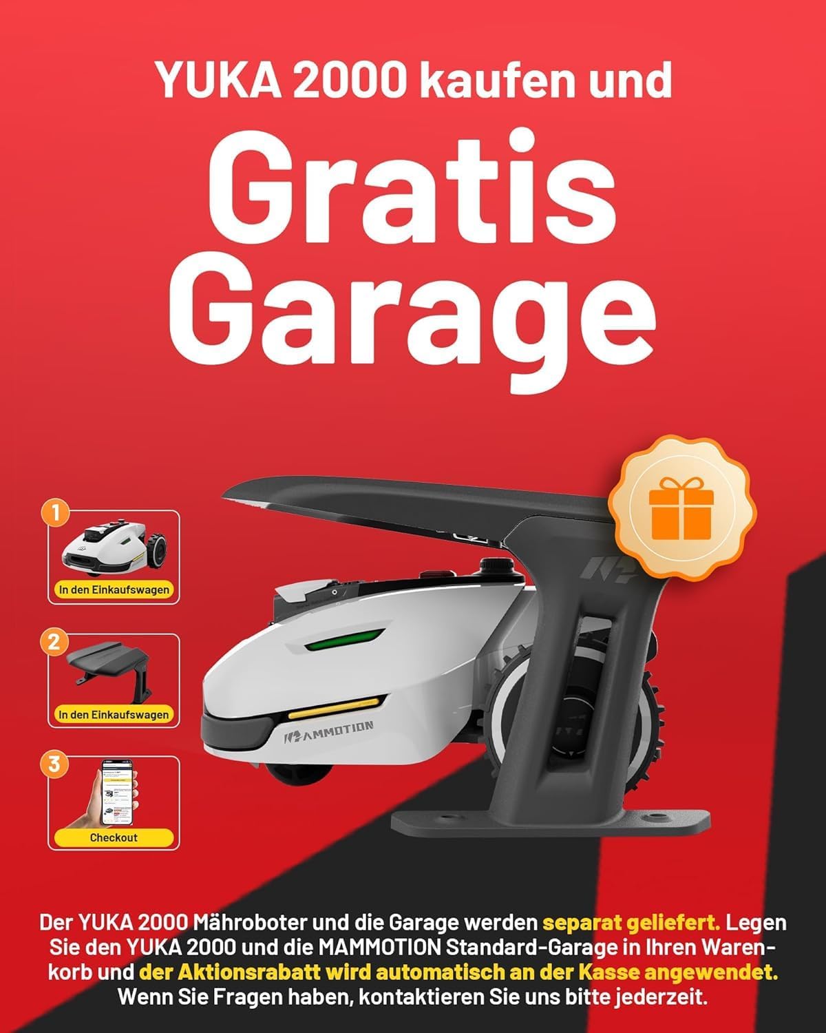 MAMMOTION YUKA 2000, 2000m², Ohne Kabel, NetRTK+Vision, 4G, 50% Steigung